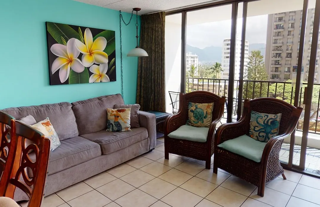 Stylish Waikiki Banyan Condo With Mountain Views, Comfort & Free Parking comprises an adjoining terrace and a balcony and features views of the mountain. Furthermore, a separate toilet is available.
